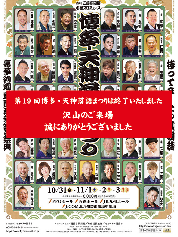 このサイトでは、博多・天神落語まつりの情報を中心に落語会に関する情報を発信しています。