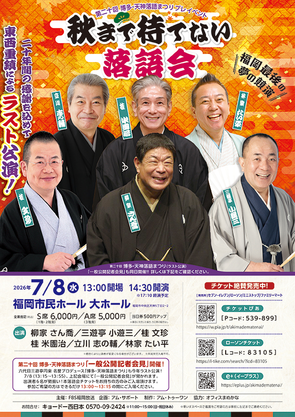このサイトでは、博多・天神落語まつりの情報を中心に落語会に関する情報を発信しています。