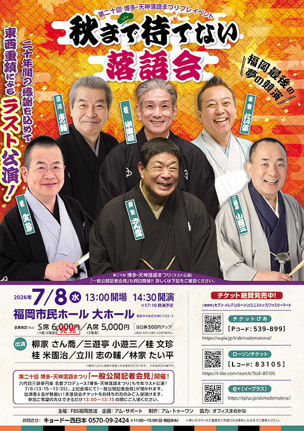 このサイトでは、博多・天神落語まつりの情報を中心に落語会に関する情報を発信しています。